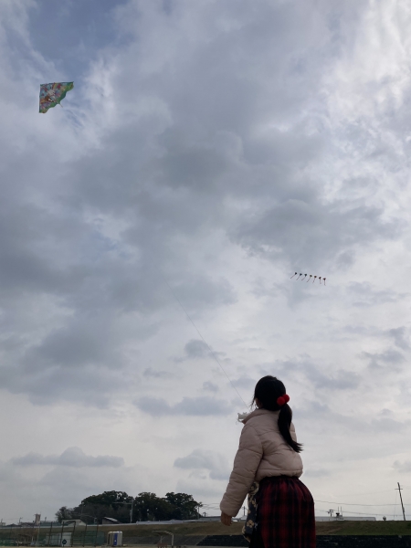 広いグラウンドだったので凧揚げの他にもボール遊びやかけっこなど寒い中たっぷり遊びました。